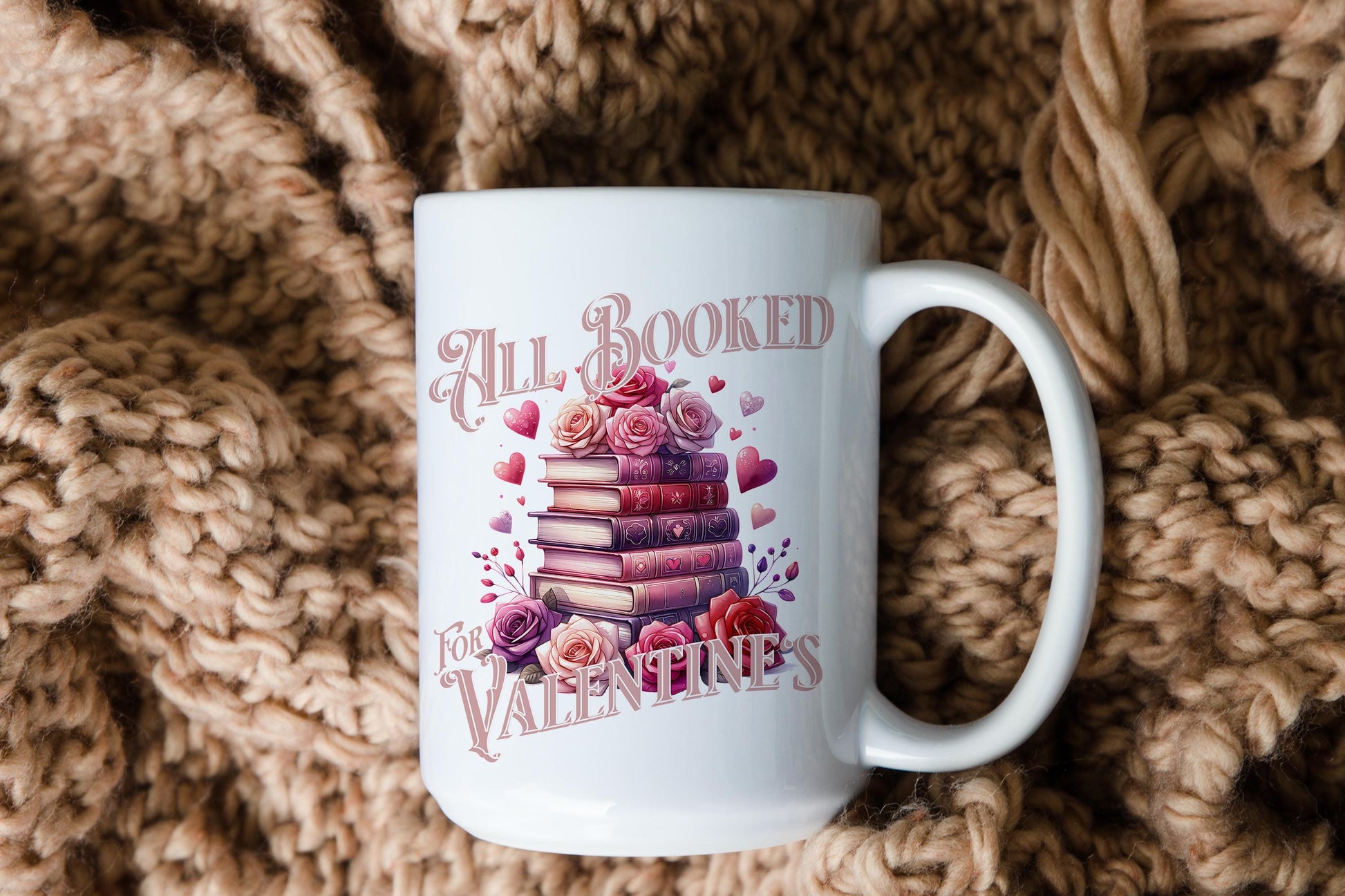 All Booked for Valentine's Day PNG, Romantic Books Stack with Roses Printable, Book Lover Gift, 300 DPI, Sublimation Design