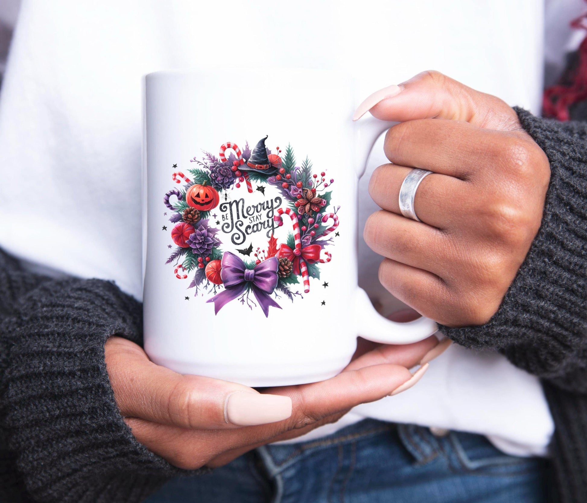 Be Merry Stay Scary Christmas Coffee Mug | Festive Holiday Mug | Christmas Gift | Goth Christmas | Spooky Christmas Mug | Creepmas Mug