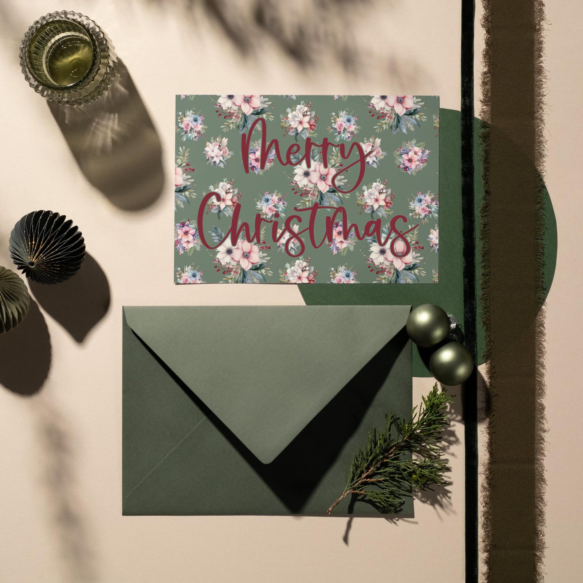 Boho Christmas Floral Patterns, Seamless Holiday Digital Paper (Digital Download)