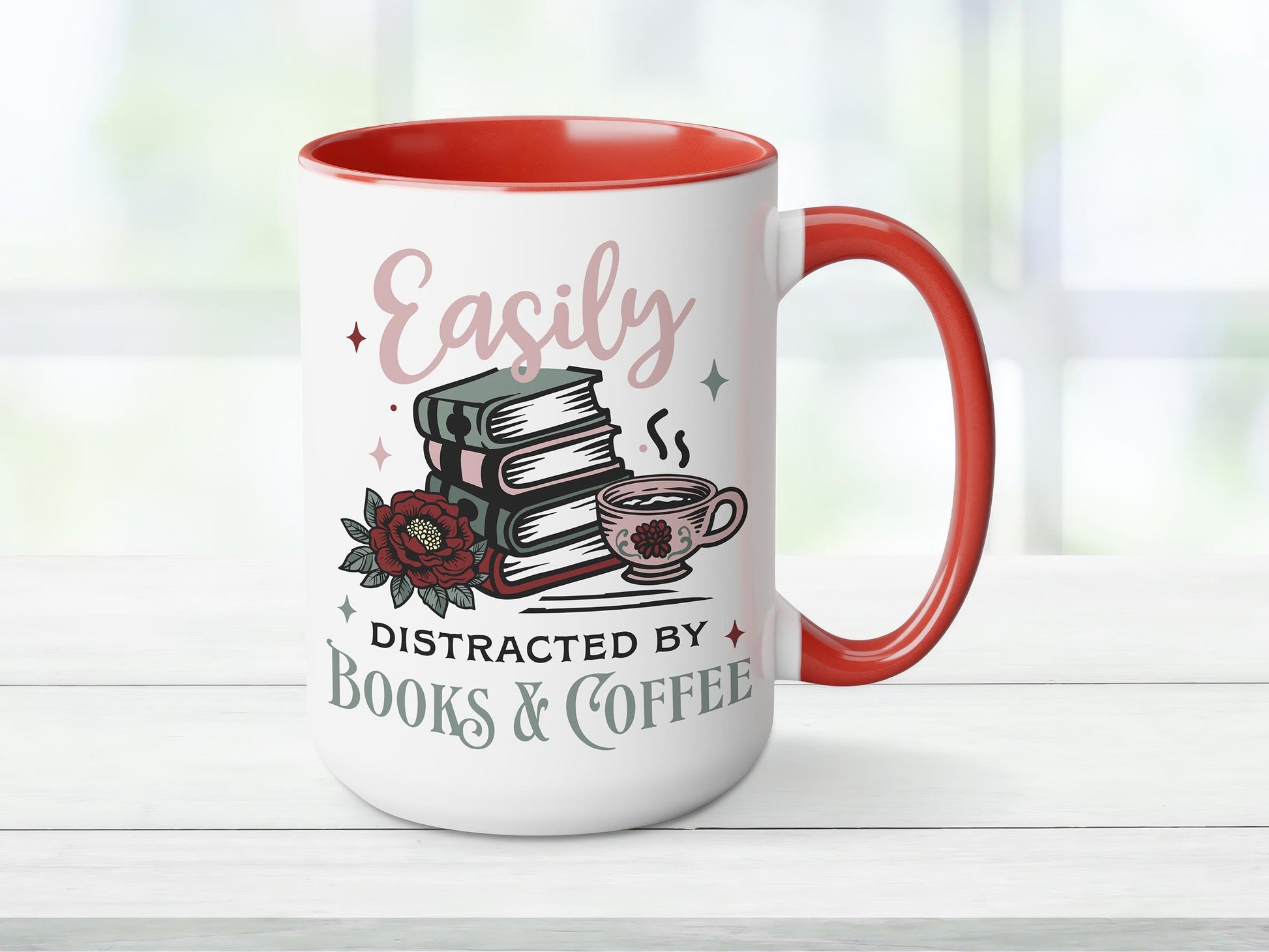 Easily Distracted by Books and Coffee Mug, Book Lover Gift, Coffee Enthusiast Mug, Literary Mug, Book Club Mug, Gift for Readers