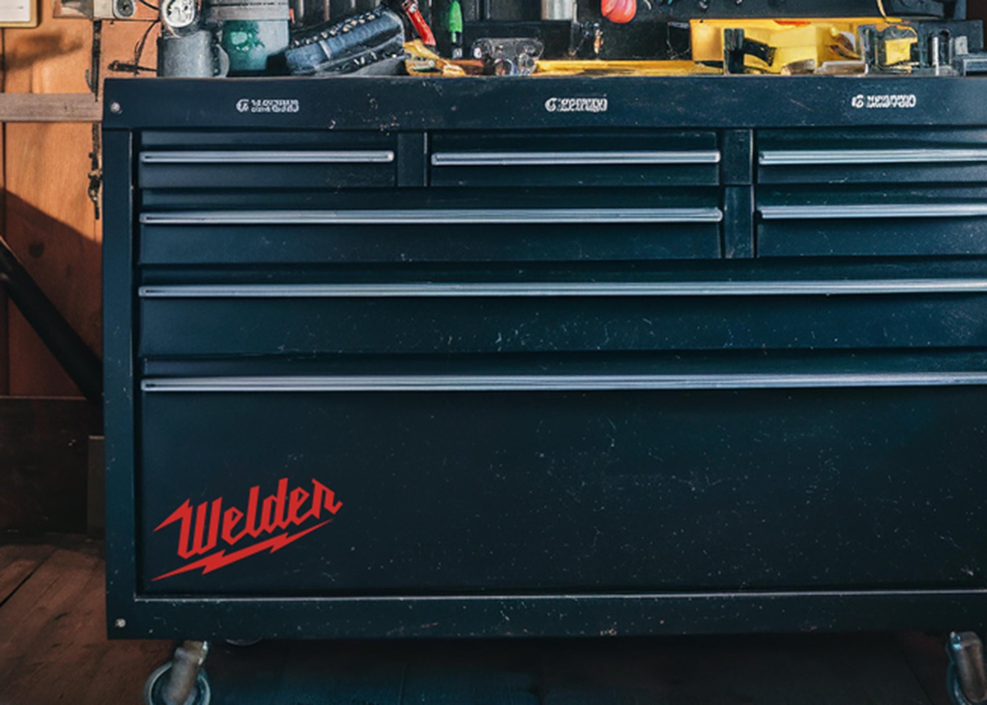 Our tradesman welder vinyl decal in the iconic Milwaukee tool font is perfect for adding a bold touch to any car, truck, or toolbox. This red welder decal is durable and weather-resistant, ensuring longevity even in tough conditions. Ideal as a gift for tradesmen, this decal is easy to apply and makes a strong statement wherever it's placed. Enhance your vehicle or gear with this standout welder decal!